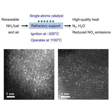 绿氨 (NH3) 是一种很有前途的可再生燃料,但燃烧特性差。高温催化 NH3 燃烧 (HT-CAC) 为提高 NH3 的可燃性提供了一种有吸引力的解决方案,并允许在减少有害排放的同时提取高质量的热量。实现 HT-CAC 是一项艰巨的任务,因为 (1) 催化剂的稳定性要求很高,以及 (2) 潜在的高 NOx 排放。在这里,我们报道了原子分散的铂 (Pt) 在 10% 二氧化锆 (ZrO2)-氧化铝 (Al2O3) 上可以促进 HT-CAC 工艺。该催化剂可在 200°C 以上点燃 NH3 燃烧,并在 1,100°C 下运行时具有出色的稳定性。 催化剂的存在还将 NOx 排放降低到 50 ppm 左右,而不会检测到 NH3 泄漏。这项工作表明,将单原子催化剂与耐火材料相结合是设计 HT-CAC 催化剂的有效策略,这反过来将有助于许多“难以减排”的行业脱碳,例如工业供热。