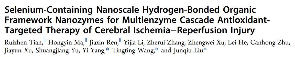 ACS Nano | 含硒纳米尺度氢键有机框架纳米酶,用于脑缺血再灌注损伤的多酶级联抗氧化靶向治疗