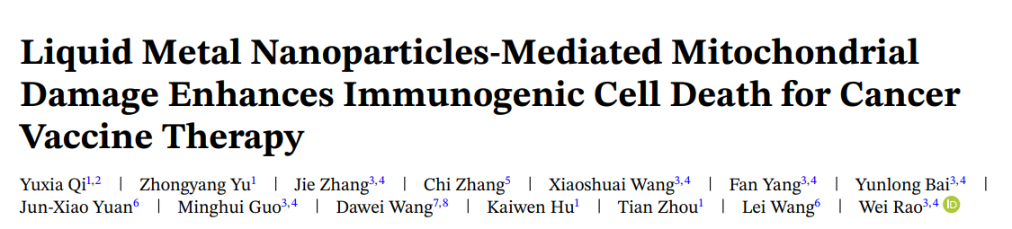 Advanced Materials | 液态金属纳米颗粒介导的线粒体损伤增强了癌症疫苗治疗中的免疫细胞死亡