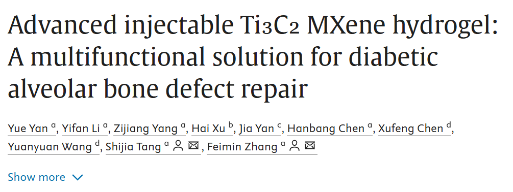 IF:13.2!可注射MXene水凝胶:糖尿病牙槽骨修复的新突破