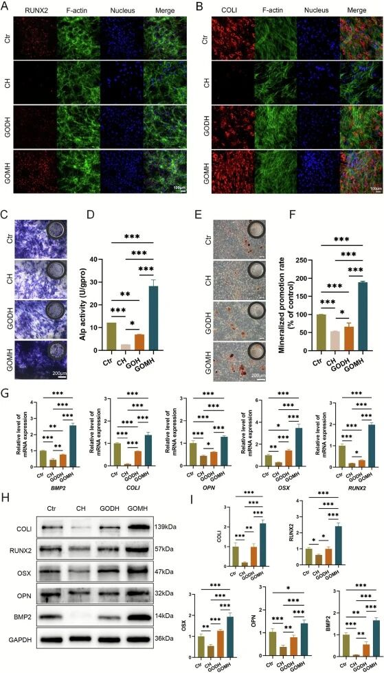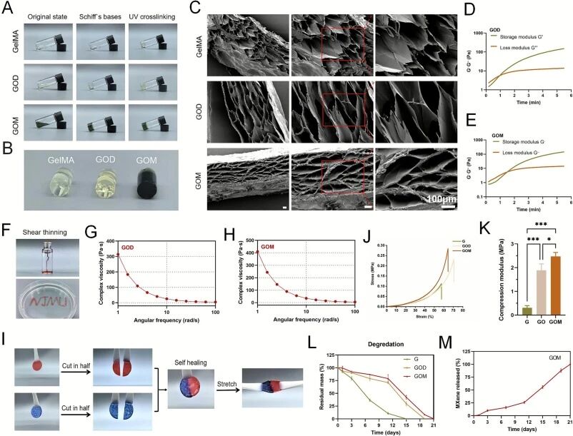 研究团队开发了双交联网络结构,使水凝胶具备优异的可注射性和自愈性能。这种动态特性使其能够精确适应不规则牙槽骨缺损的复杂几何形态,同时在植入后保持稳定滞留,解决了传统刚性支架在复杂骨缺损部位整合性差的问题 。