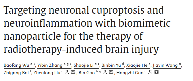 Biomaterials | 用仿生纳米颗粒靶向神经元铜癌变和神经炎症治疗放疗引起的脑损伤