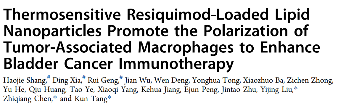 ACS Nano | 负载热敏瑞喹莫特的脂质纳米颗粒促进肿瘤相关巨噬细胞的极化以增强膀胱癌免疫治疗