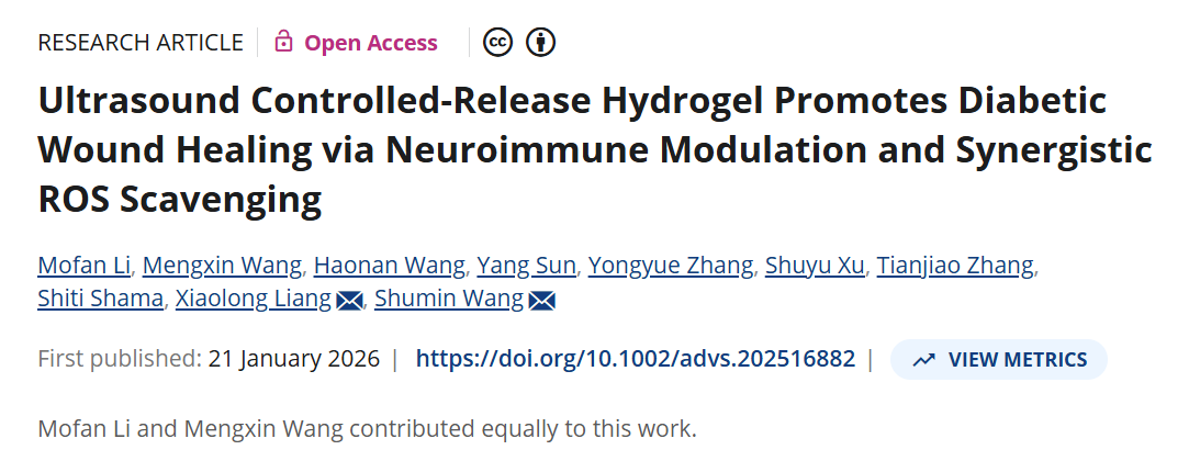 IF :14.1!超声控释水凝胶:神经免疫调控协同ROS清除,开启糖尿病创面愈合新思路