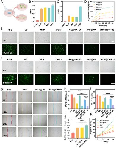 协同治疗:通过MnP的SOD/CAT样活性清除ROS,同时借助CGRP促进巨噬细胞M2极化,改善成纤维细胞功能。