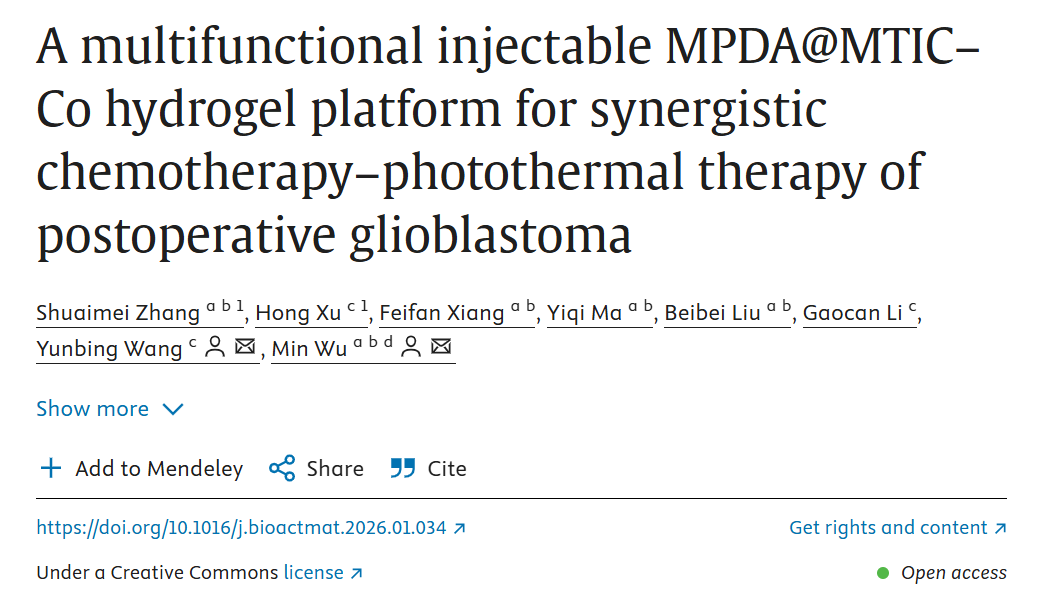 IF :20.3!注射型水凝胶新突破:协同化疗-光热治疗对抗胶质母细胞瘤术后复发