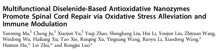 该研究以题为“Multifunctional Diselenide-Based Antioxidative Nanozymes Promote Spinal Cord Repair via Oxidative Stress Alleviation and Immune Modulation”发表在ACS Nano上。