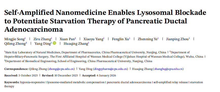 Advanced Materials | 自我扩增纳米医学使溶酶体受阻增强胰管腺癌的饥饿治疗
