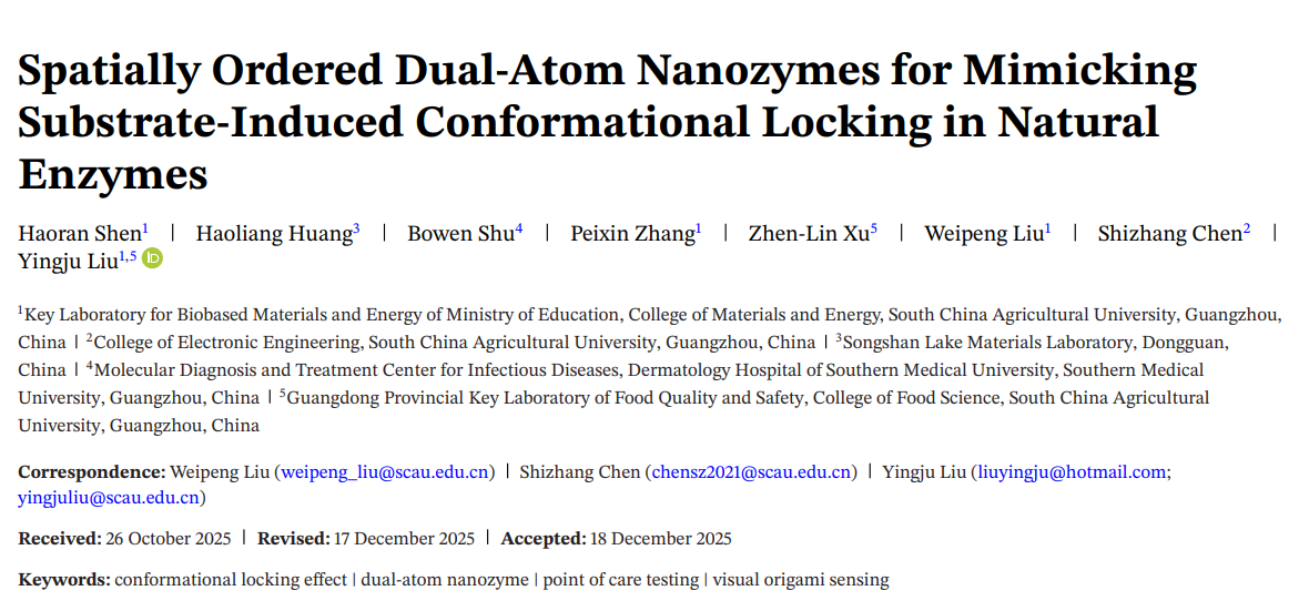 Advanced Materials | Spatially Ordered Dual-Atom Nanozyme for Mimicking Substrate-Induced Conformational Locking in Natural Enzymes
