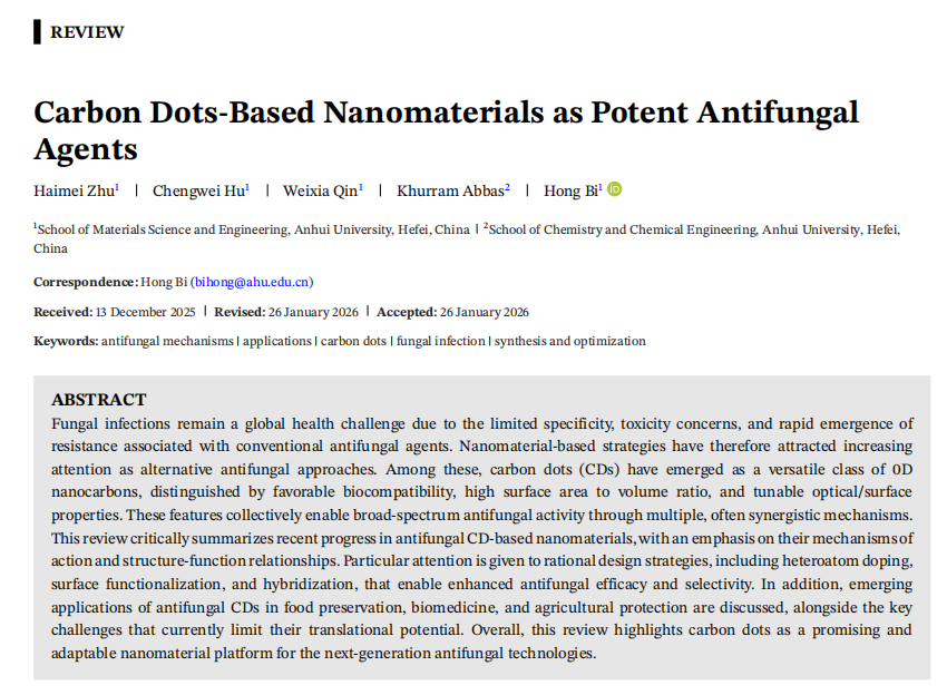 Advanced Functional Materials | Carbon Dot-Based Nanomaterials as Potent Antifungal Agents