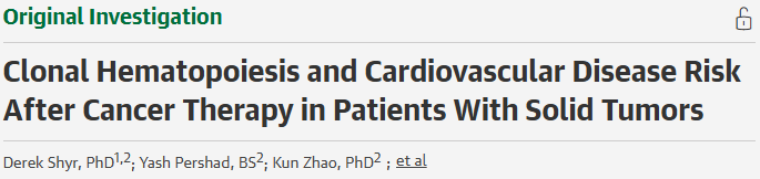在癌症治疗不断进步的今天,越来越多的患者得以长期生存,但治疗相关的远期并发症,尤其是心血管疾病,日益成为影响生存质量的关键问题。近日,《JAMA Oncology》发表的一项大型队列研究揭示,一种常见的年龄相关血液状态——克隆性造血(CHIP),可能与接受化疗、放疗或免疫治疗的实体瘤患者的心血管风险显著相关。这一发现为癌症幸存者的心血管风险管理提供了新的视角。