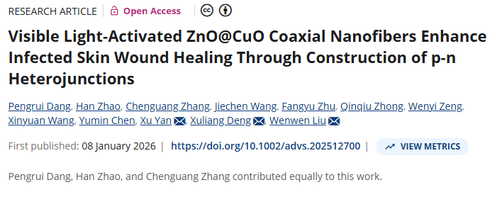 感染性伤口的愈合,尤其是合并糖尿病等基础疾病的患者,始终是临床实践中的一大难题。传统抗生素治疗面临耐药性风险,而其他依赖于紫外线或近红外光激活的光催化抗菌材料,则存在生物毒性或热损伤等局限。近年来,随着纳米材料与光催化技术的发展,一种基于活性氧(ROS)的非侵入性、时空可控的抗菌策略展现出巨大潜力。近期发表于《先进科学》的一项研究,报道了一种创新的氧化锌@氧化铜(ZnO@CuO)同轴纳米纤维,其可在生物安全的可见光下被高效激活,显著促进感染性皮肤伤口愈合,为解决这一临床痛点提供了新思路。
