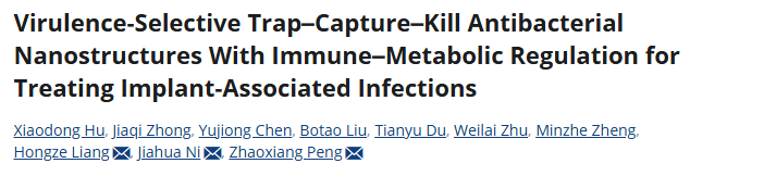 总而言之,这项研究提出的F-14-TNA系统代表了一种治疗植入物感染的全新范式。它不再仅仅依赖化学药物的释放,而是综合利用纳米结构的物理诱捕、化合物的静电捕获以及针对细菌关键代谢通路的精准杀灭,构建了一个多层次的协同抗菌体系。同时,其兼具的免疫调节与促成骨能力,真正实现了从“抗感染”到“促愈合”的跨越。虽然从实验室走向临床还有很长的路要走,但这一集成化、智能化的设计理念,无疑为未来开发更高效、更安全的抗植入物感染材料指明了充满希望的方向。