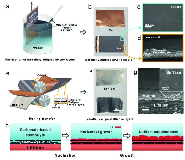 (d)MXene层可以物理抑制Li枝晶的垂直生长;