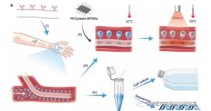本次文献分享介绍深圳大学张晗教授课题组的研究工作。该工作通过在医用导管中修饰肿瘤特异性抗体及黑鳞纳米薄片,探索了体内捕获循环肿瘤细胞并利用光热效应对捕获细胞原位杀伤的可能性。