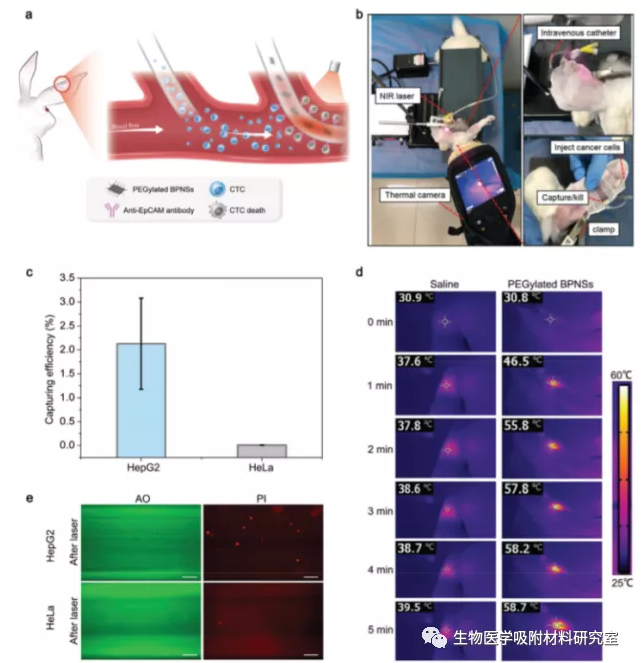 ●将5mg/mL的BPNSs注入导管,808nm激光激发5分钟后对捕获的癌细胞杀伤率达100%。