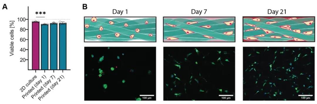 图6 缠结微束型凝胶负载软骨细胞的高细胞活性3D打印