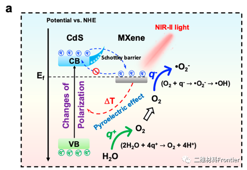 图4.M/CDS的水分裂和ROS生成的热释电催化示意图。