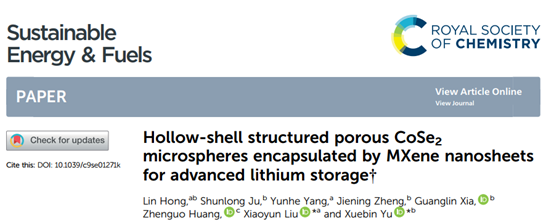 最近,华东理工大学Xiaoyun Liu教授与复旦大学Xuebin Yu教授课题组在国际高水平学术期刊 Sustainable Energy Fuels上发表题目为:Hollow-shellstructured porous CoSe2 microspheres encapsulated by MXene nanosheets for advanced lithium storage的研究论文,设计了一种新型的空心壳结构的多孔CoSe2微球,通过对Co-MOFs的硒化与简易的静电自组装技术而制备,具有优异的电化学性能,第一作者为洪林。