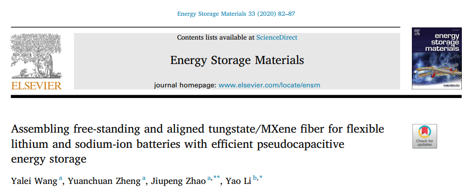 最近,哈尔滨工业大学赵九蓬教授课题组在知名学术期刊Energy Storage Materials 上发表题目为Assembling Free-Standing and Aligned Tungstate/MXene Fiber for Flexible Lithium and Sodium-Ion Batteries with Efficient Pseudocapacitive Energy Storage的研究论文。设计组装了一种一维线状电极,并在锂离子电钠离子电池中都有较好的性能表现。