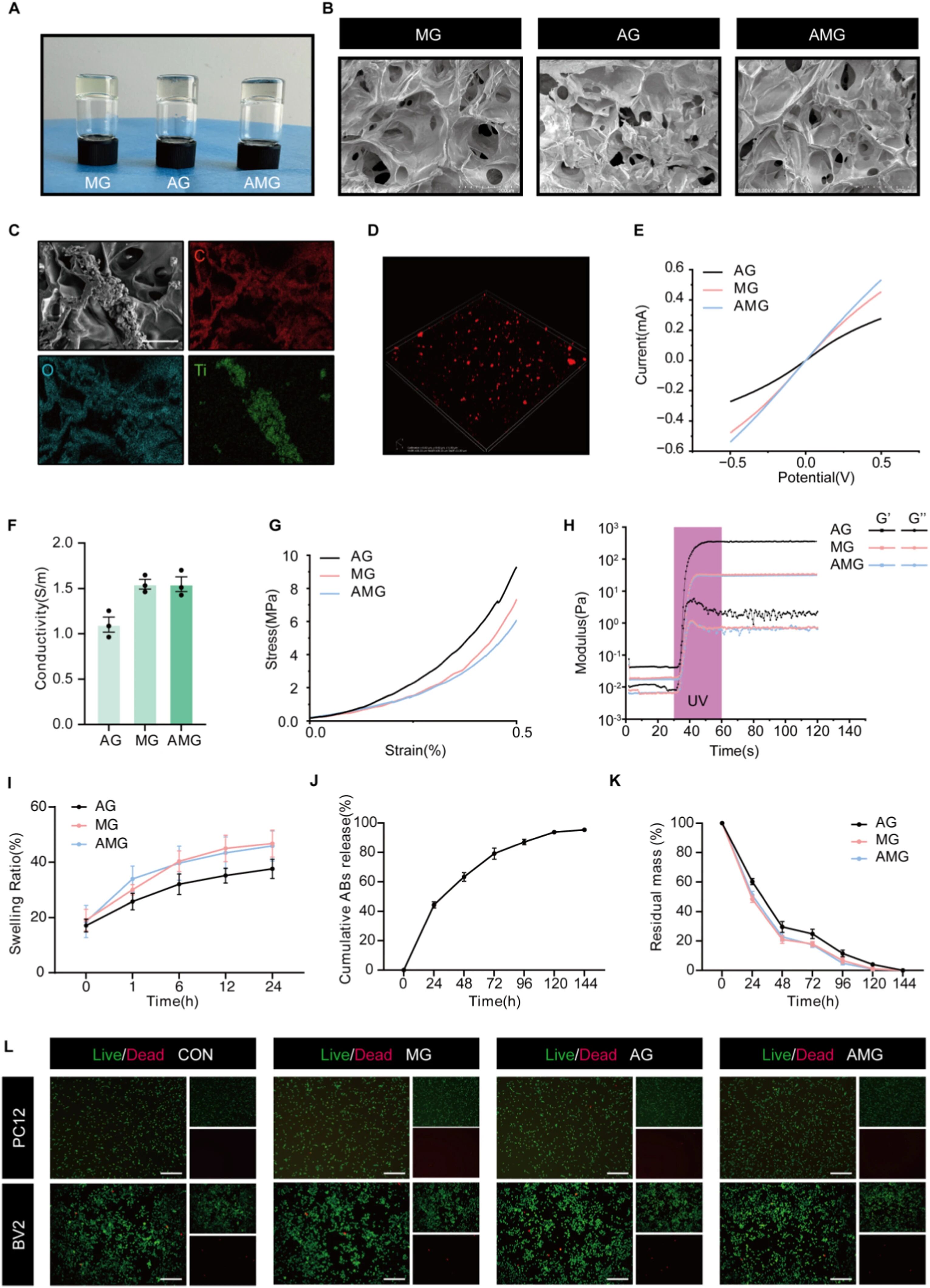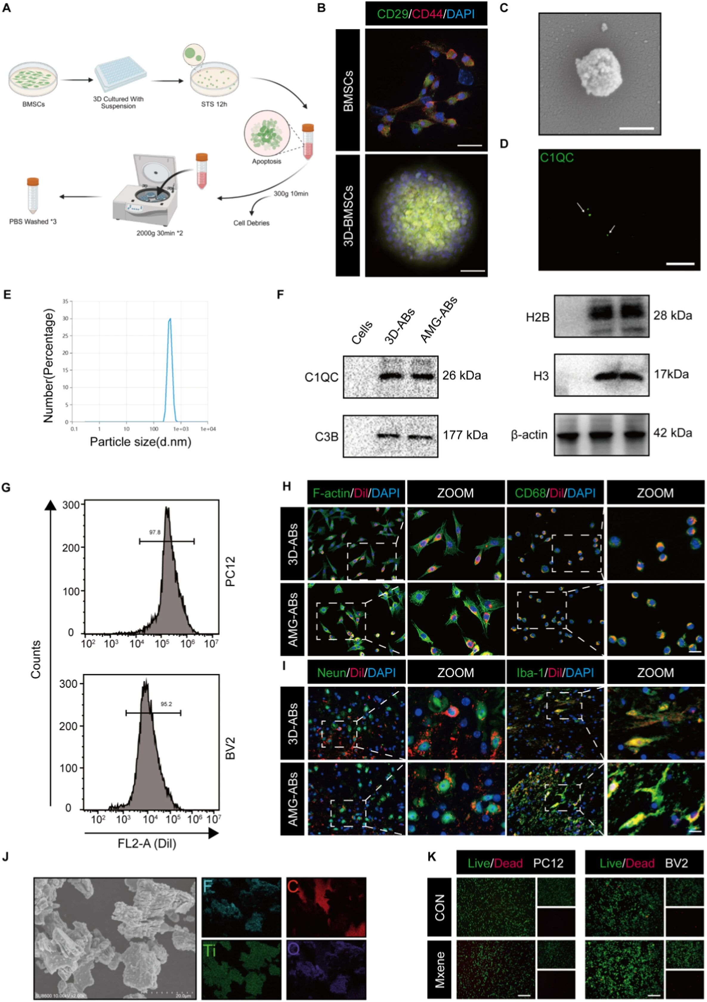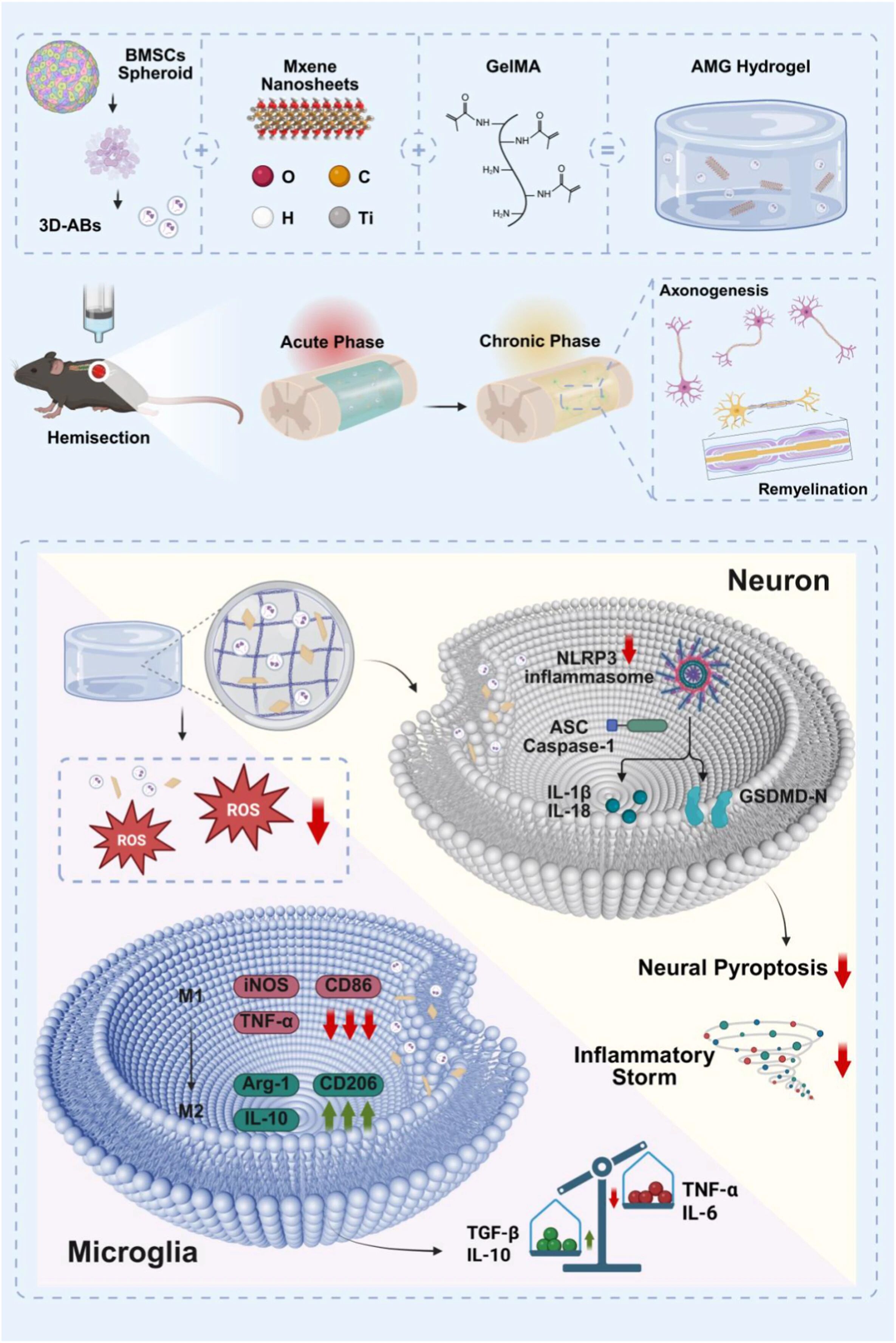 本文研究了一种用于脊髓损伤修复的新型复合水凝胶。脊髓损伤是一种严重的神经系统疾病,现有治疗手段效果有限。针对此问题,本研究开发了一种集成三维骨髓间充质干细胞来源凋亡体的导电水凝胶。该水凝胶基于明胶甲基丙烯酰(GelMA)和MXene纳米片构建,具有良好的注射性和导电性。将其移植到脊髓损伤小鼠模型后,该材料能有效填充损伤腔隙,通过持续释放凋亡体调节局部免疫反应、减轻神经炎症,并利用其导电特性支持电信号传递,从而促进神经功能连接的重建,缓解神经元继发性损伤。这项工作为脊髓损伤的修复策略提供了新的思路。该研究发表于材料科学领域的权威期刊《Bioactive Materials》。