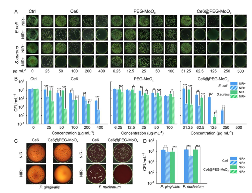这一系统的精妙之处在于其构建了一个完整的“闭环”治疗逻辑。首先,它利用光声成像(PAI)功能实现牙周袋深度的可视化、无创诊断与监测。随后,在近红外光照射下,钼基纳米酶发挥类过氧化氢酶(CAT)活性,分解过氧化氢产生氧气,有效缓解牙周组织的缺氧状态,并极大增强了光敏剂Ce6的光动力抗菌效果,可高效清除包括厌氧菌在内的深层生物膜。完成杀菌后,纳米酶持续的类超氧化物歧化酶(SOD)活性还能清除残余的活性氧,减轻氧化应激损伤。更有价值的是,释放的钼离子能激活PI3K/AKT信号通路促进血管新生,同时诱导巨噬细胞向修复型的M2表型极化,并刺激牙周膜干细胞的成骨分化,从而协同促进牙周软硬组织的再生。这项研究成功地将诊断、抗菌、抗炎和促再生功能整合于一个智能响应型材料平台,为牙周炎的精准闭环治疗提供了极具临床转化潜力的新策略。