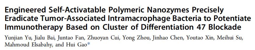 该研究以题为“Engineered Self-Activatable Polymeric Nanozymes Precisely Eradicate Tumor-Associated Intramacrophage Bacteria to Potentiate Immunotherapy Based on Cluster of Differentiation 47 Blockade”发表在ACS Nano上。