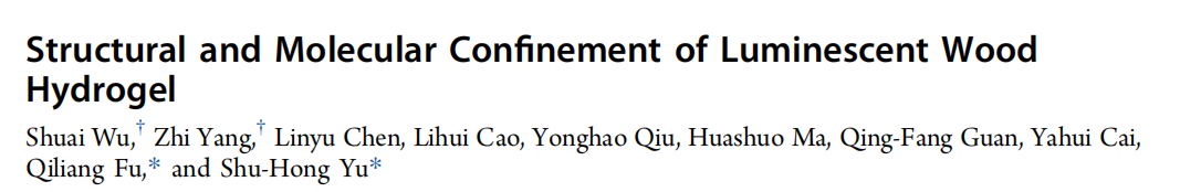 该研究以题为“Structural and Molecular Confinement of Luminescent Wood Hydrogel”发表在ACS Nano上。