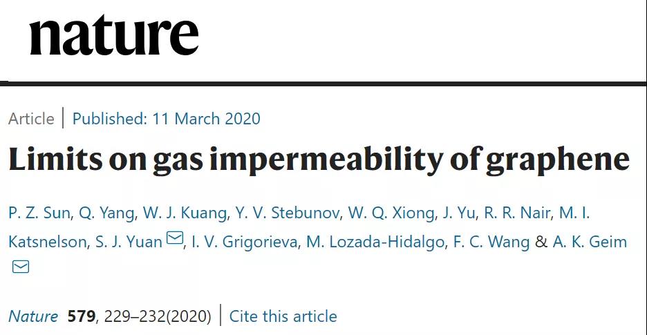 P. Z. Sun et al. Limitson gas impermeability of graphene. Nature 2020.