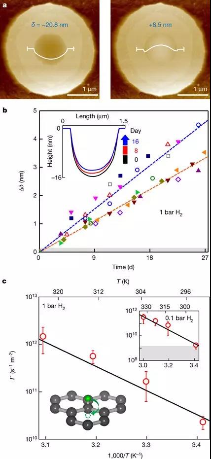 有鉴于此,有石墨烯之父美誉的英国曼彻斯特大学诺奖得主A. K. Geim团队进一步通过实验证实了无缺陷石墨烯的不可透过性,拓展了不可透过性的极限,并揭示了氢气在石墨烯中的异常透过性机理。