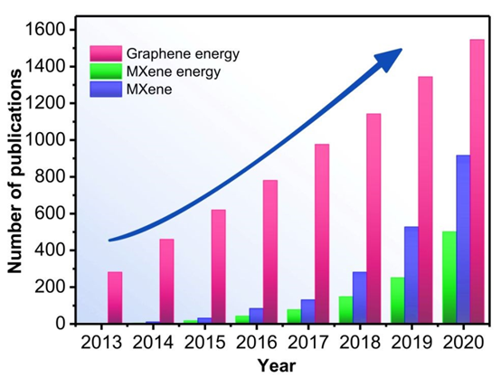 图1. MXene,MXene能源和石墨烯的出版记录