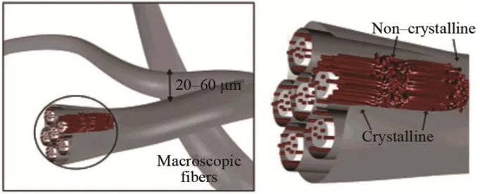 图2 纯化纤维素纤维的分层结构和半结晶结构示意图[2]