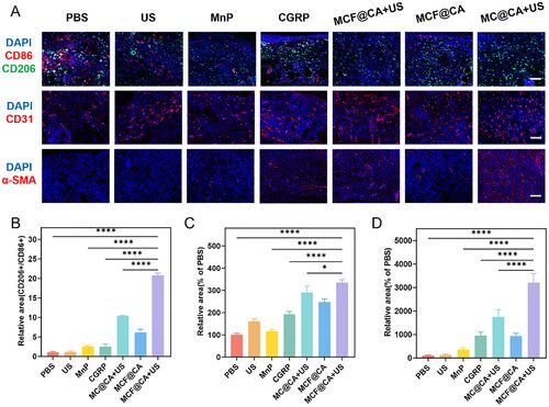 协同治疗:通过MnP的SOD/CAT样活性清除ROS,同时借助CGRP促进巨噬细胞M2极化,改善成纤维细胞功能。