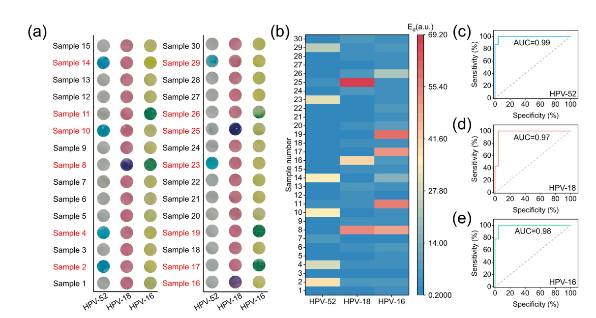 基于o-FePd DAN优异的催化特性,研究人员将其集成到一种三通道可视化折纸传感器中,构建了可用于人乳头瘤病毒多亚型同步基因分型的检测平台。该平台通过催化发夹组装实现信号放大,并借助颜色变化实现裸眼判读,在临床样本中展现出高灵敏度、高特异性与良好的稳定性。这一工作不仅为设计具有类酶动态调控能力的纳米酶提供了新思路,也推动了纳米酶在即时检测与多靶标生物传感中的实际应用。