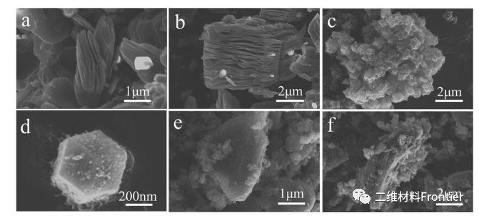 Figure a, b:MXene, show the morphology of MXene, indicating the effective exfoliation of the maximum phase, therefore, Co-CZIF and Ni-CZIF nanoparticles can be easily modified on the surface and interior of MXene. Figure c, d Ni-CZIF show a typical and uniform polyhedral structure (average size 400nm) on the surface and interior of MXene. EfMXene@Ni-CZIF, after electrostatic self-assembly, spherical layered nanoparticles were successfully deposited on the surface and interior of MXene.