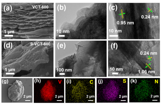 Figure 3. Physical composition characterization of N, S co-doped V2CTx MXenes.