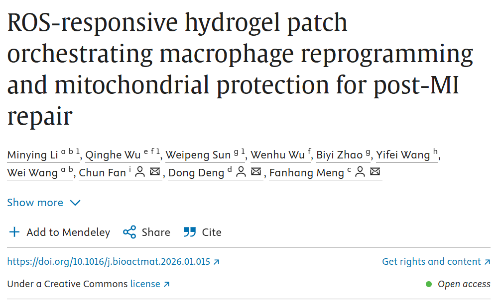 IF: 20.3! Smart Hydrogel Patch: Senses Heart Damage Signals and Precisely Releases Drugs to Repair the Myocardium