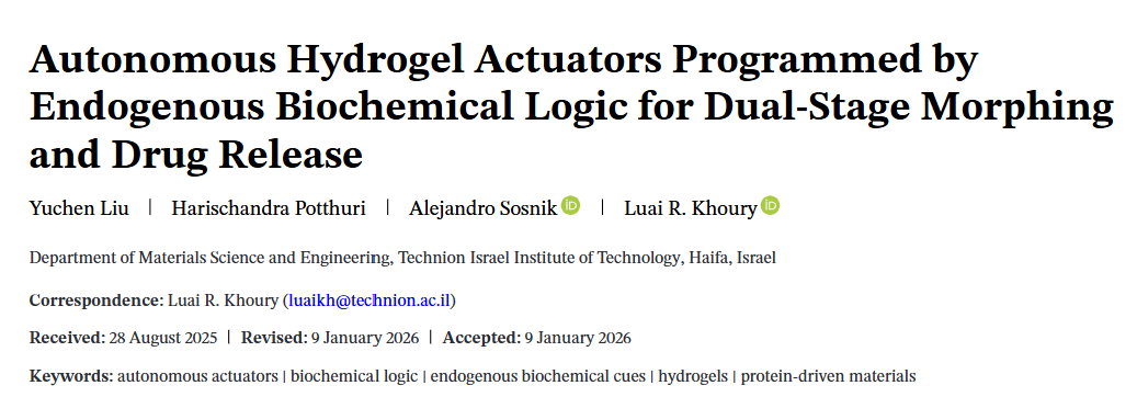This Advanced Materials cover highlights a breakthrough: a smart hydrogel that "understands stomach signals." Researchers at the Technion-Israel Institute of Technology leveraged bovine serum albumin (BSA)’s dual responsiveness to gastric acid and pepsin, combined with 3D printing, to create a bilayer hydrogel actuator. In the stomach’s acidic environment, BSA structural changes drive rapid bending for grasping; later, pepsin acts as a "biological key," gradually degrading the protein network to soften and reset the material, enabling autonomous "grasp-release" cycles—all controlled by intrinsic biochemical signals without external intervention. More innovatively, they integrated the anticancer drug doxorubicin (DOX) into the system, achieving a "smart device" combining shape change and drug delivery. During bending, drugs are securely locked; only when pepsin degrades the material does DOX release intensively. This precise "locate-then-release" timing control, like an autonomous micro-robotic pharmacist in the stomach, offers new solutions for targeted gastric therapy and sustained drug release, marking a key step toward higher autonomy and intelligence in bioresponsive materials.