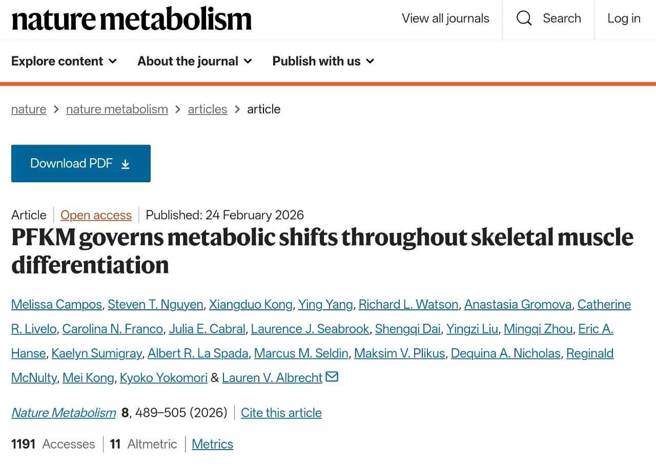 Further explore the metabolic regulatory role of PFKM in skeletal muscle development and homeostasis maintenance;