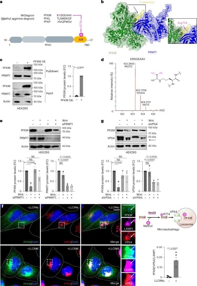 Wnt signaling selectively methylates PFKM via PRMT1, followed by its lysosomal degradation mediated through microautophagy;
